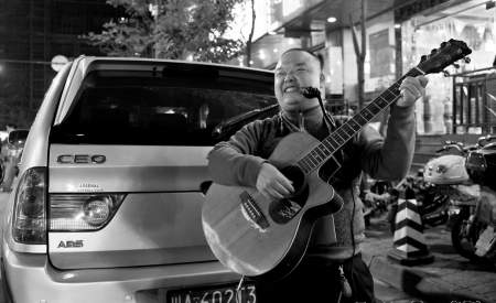 华西都市报:第一次职业卖唱时什么感觉?胖哥:其实有点害怕,生怕熟人认出来,戴了顶白帽子,还戴了副墨镜。渐渐地没有怕的感觉。只要过了面子这关,一切都好说。