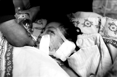 苗苗喝水只能依靠吸管。本报记者潘之望摄