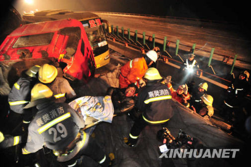 新华网武汉1月10日电(记者李鹏翔)湖北省交警总队10日下午公布最新情况,9日晚发生在(武)汉十(堰)高速枣阳段的连环撞车事故中,6人因撞车死亡,1人情急之中跳桥身亡,14人受伤。
