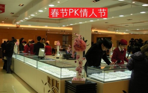 60年难遇的春节情人节,也让京城的钻石商家铆足了劲,提前打响了促销战。以最近开业的钻石卖场为例,采取新的商业运营模式和多种营销手段,吸引了大批京城内外的青年男女,有的情侣甚至从天津、河北、东北专程赶来购买钻石,而有的已婚中老年夫妻,也准备赶在这个特殊的情人节之前为自己美满的婚姻补一份纪念品。记者发现,市价1万元人民币左右的钻戒,在这里只售5000元人民币左右,其价格已经与网络钻石店持平。难怪元旦开业仅三天时间,即创下销售额1200万元的神话。