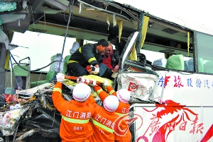 事故发生后,消防中队指挥员立即对现场情况进行侦查,发现事故车辆分别为1辆旅游大巴和1辆垃圾清扫车,两车共有4名被困人员,而且都有不同程度的受伤。经过20分钟的努力,两辆车的4名被困人员全部救出,交由120救护车紧急送往医院治疗。