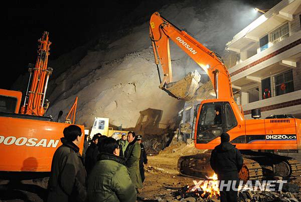 3月10日深夜,现场救援工作正在紧张进行。新华社记者 陶明 摄