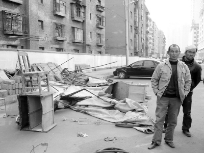 “工人把帐篷搭到这儿后,我们门前的停车场几乎都被占了,对生意影响很大!”3月10日下午4时许,记者来到农民巷西段时,“肆坊肘子”的老板正为这事犯愁。随后,相邻的“新港丽”中西餐厅和温州港的老板也向记者诉说了他们的烦恼。他们告诉记者,3月9日晚上,一小部分工人开始搭建帐篷住了下来,晚上9点多,他们就看见工人在路边倒脏水、随地大小便,顾客停在路边的车也被搭建材料划伤。第二天,地上就堆了许多生活垃圾,到了中午工人就坐到酒店门前的台阶上,对生意影响太大了,“餐饮生意讲究的就是卫生,这显然不太好!”