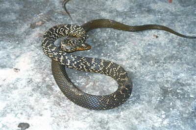 据专家介绍,大王蛇是没有毒的,即使咬了人也没事。无毒蛇不会主动攻击人,为避免其进到室内,可以在家撒些石灰。(记者 汤华明)