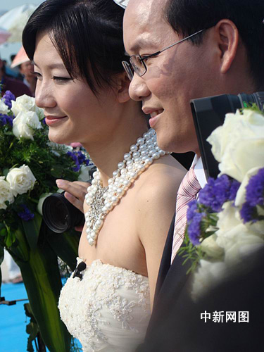 下午3时不到,新娘李丹旻身披洁白婚纱在两位美丽伴娘的陪同下,出现在游艇岸边的仪式现场。她向记者表示,与新郎康造东相爱也有好几年,今天在亲人和朋友以及在现场很多不认识的朋友见证下,举行婚礼,既兴奋又紧张,“我们成为海南首对游艇婚礼的参与者,感觉我是最幸福的新娘。”李丹旻甜美地笑着说。