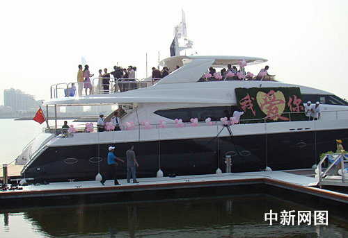 图为海南首次举行的游艇婚礼现场。 作 者:付美斌