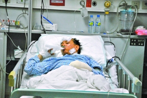被砍伤的孙伟军前晚被送往深圳市第一人民医院接受长达5个小时的手术,昨日仍在医院的胸外科术后监控室治疗。他背上中了8刀、头部中了3刀、脖子挨了2刀,见人连说幸好自己跑得快,才捡回一条命。