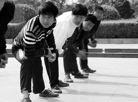 现场负责训练的邹本喜警官告诉记者:“从3月26日开始对这些新招聘的人员进行严格训练,虽然他们家中有钱的很多,但都很认真、刻苦,也能严格要求自己,都怕被淘汰。”