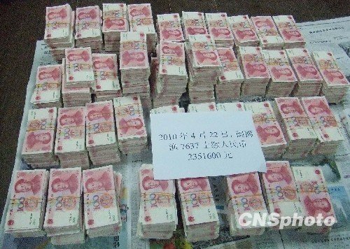 4月22日,福建泉州一渔船船主在海上作业捞起的面额达235余万元无主假币,上缴泉州警方。 中新社发 纪雷江 摄