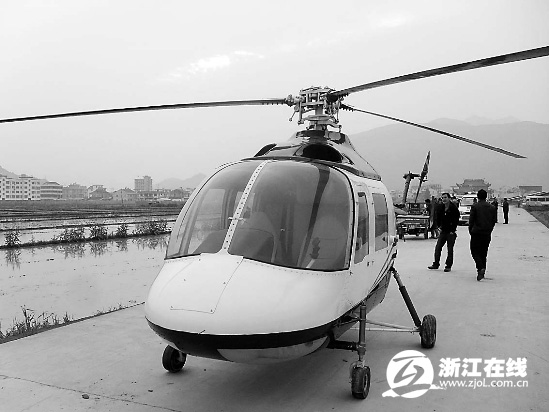 30分钟后,民警在乐成镇坝头村一处空地上,看到了这架崭新的小型直升机。机主和驾驶员都站在飞机旁,看上去有些尴尬。