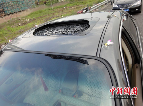 5月2日下午15时20分许,在甬台温高速奉化尚田路段及甬金高速洞桥出口路段,因为天空突降冰雹致使在该路段行驶的车辆悉数被砸。
