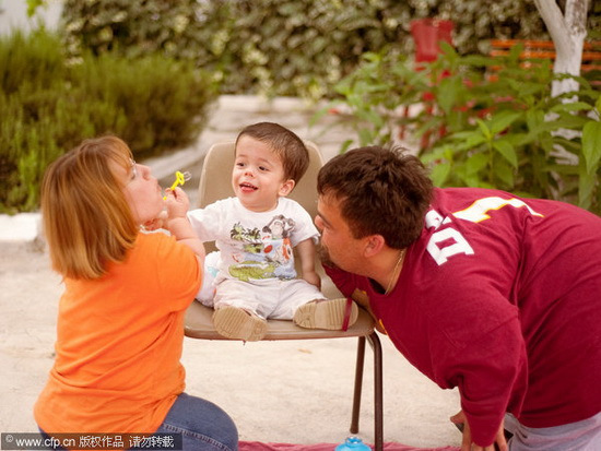 2009年2月18日消息,美国弗吉尼亚斯特宁,Tina一家四口都是侏儒,四口之家享受着他们的“小号”生活。