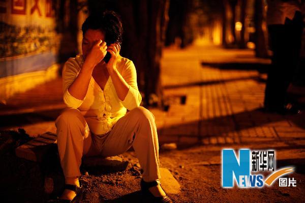 5月9日凌晨,家属在发生事故的工地门口等待消息。新华社记者卢汉欣摄