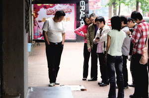 “相亲男”的征婚行为引来不少路人观看,其中也不乏一些年轻女子,不过她们均一笑置之。