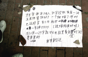 “相亲男”还说,采取这种方式来温州市区征婚,这次是第三次了,第一次是今年正月初四来的,第二次是在三四天前来的,都是在公园路一带摆摊。他说他的家人对此行为并不知情。