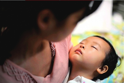 朵朵在母亲的怀中熟睡。记者 张沫 摄