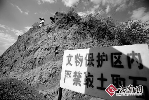 龙首关城墙遗址旁立起了保护牌。(图片来源:云南网)