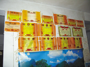 家里贴满了晓晴的奖状。