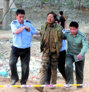 昨日(21日)17时14分许,藏身管道内的男子李秦刚(音)被民警抓住右臂,拖出水泥管道。从警方最初救援遭其拒绝开始,他已藏身井下近100个小时。