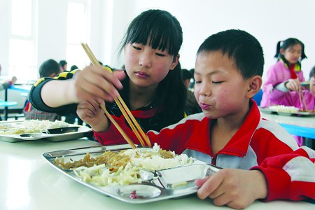 陈钰娇7岁的弟弟陈鑫是擂鼓小学一年级的学生,自从去年9月弟弟入学以来,陈钰娇就肩负起了照顾弟弟的责任。每天中午,她要带着弟弟去餐厅吃饭。吃饭时,两人不舍得吃荤菜,只打素菜,最多也是打一份荤菜分着吃。