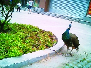 也许是周围修路的缘故,位于基隆街上的“美知美味”饭店生意并不火,服务员闲着没事坐在门口,远远看见有人光顾,便起身迎接。还没进入饭店,外面绿化带旁有只孔雀引起了记者注意。孔雀被拴在一棵树上,不时抖动几下羽毛,这种平时在动物园里才能见到的美丽动物,也许已经知道自己不久会被哪位财大气粗的顾客买下,成为盘中之物,所以显得可怜巴巴的。