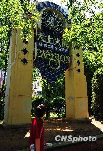 2010年5月19日,北京东三环路边,曾经辉煌一时的“天上人间”夜总会已变得萧条冷落。 中新社发 樊甲山 摄