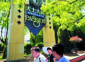 位于北京东三环边的“天上人间”标牌。5月11日夜,这家“被神话”的夜总会,因存在有偿陪侍被有关部门勒令停业6个月。樊甲山 摄