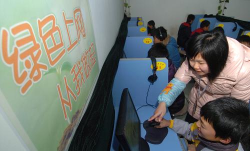 2月3日,安徽省合肥市绿色上网辅导员史坤指导孩子文明上网。新华社记者 刘军喜摄 资料图片