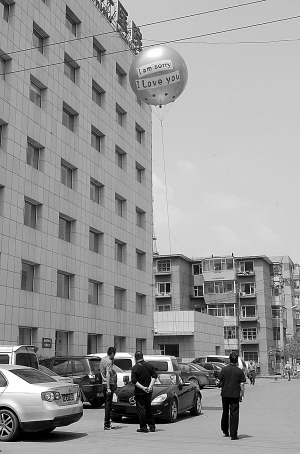 据《城市晚报》报道,昨日11时30分左右,长春市绿园区普阳街一家医院的大门旁边,停着一辆没有牌照的崭新的黑色奔驰跑车,吸引人目光的不光是这辆拉风的跑车,还有跑车后面拴着的一个大氢气球,气球上写着“I'M SORRY、I LOVE YOU(对不起,我爱你)”。