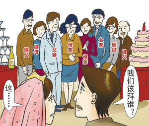 此帖一发,一石激起千层浪,引来不少“80后”网友跟帖大倒苦水。生于1985年的网友“amazon1220”感叹,他和女友的父母都是离异后再婚,双方家长加起来共有8个,婚礼上若是将他们全部请上台,场面蔚为壮观。可是,哪个爸妈都得罪不起,稍有不周,就会让老人伤心难过。到底该如何安顿他们?煞是为难。