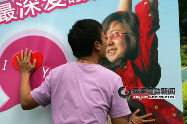 王乐亲吻胡安萱的大幅海报。(图/韩静宇)