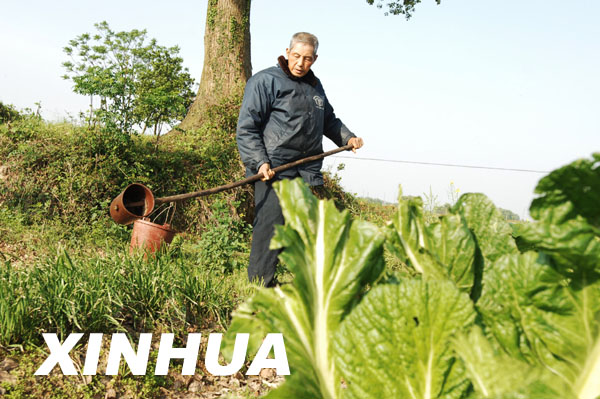蒋国珍在浇灌菜地(资料照片)。平日里,蒋国珍最常吃的是红薯和大米煮成的混合饭,花钱买点牛下水已属“营养餐”,穿的是旧衣服……30年来,江西新余市80岁的农村离休教师蒋国珍将节俭出的20余万元钱资助学生,受资助学生人数达2万余名。新华社发