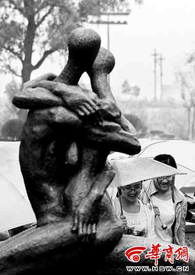 热吻裸体雕塑现身西安公园 妈妈拉孩子绕开(图)