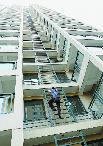 徒手攀爬,上下高楼大厦如履平地,听起来似乎只有电影中的“蜘蛛侠”才能有如此敏捷的身手。然而,在杭州城北阮家居小区,只要你想,你就可以成为“蜘蛛侠”:因为这里的高层楼房外立面都安装了一架铁梯子,从一楼直通顶层。