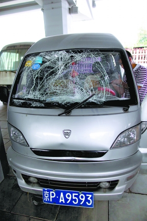 肇事“小面”前脸变形,前挡风玻璃裂成“蜘蛛网”。