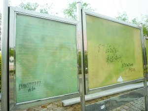 公园简介上涂写着小广告。