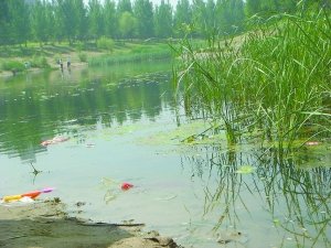水面上漂浮着杂物。