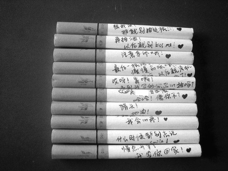 “想我没?那就别抽这根!”“慢点开车,我等你回家。”这些情侣间的留言会写在哪儿?便条?E-mail?都不是。答案是:香烟。没想到吧!