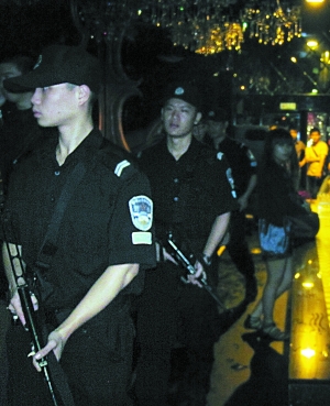 6月10日凌晨,越秀警方出动持冲锋枪特警清查沿江路、长堤大马路一带酒吧、KTV。 黄澄锋摄
