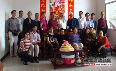 上午11点07分,祝寿活动正式开始,各界亲友为老寿星送上深情祝福,随后田龙玉老人于接过生日蛋糕与到场的各位亲友一起分享生日蛋糕。