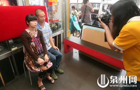 照相馆拉开一块红布,阿鑫和阿晴并排坐在一起,目对镜头,表情有点紧张。“一、二、三。”几番调试,摄影师拍下了一张满意的照片。