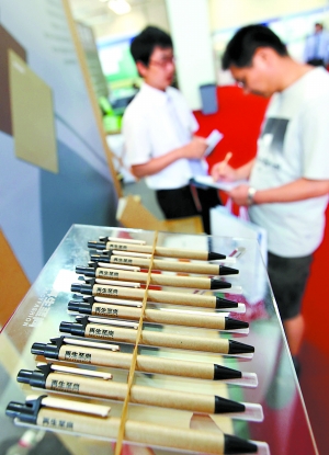 刚刚闭幕的北京节能环保展上,用回收材料制作的再生文具颇受追捧。
