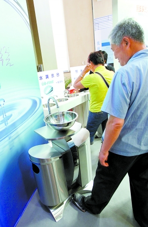 比感应式更节水的脚踏式水龙头引来不少观展市民试用。