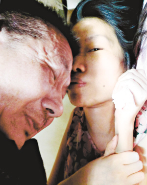 昨日,记者来到刘祖武家中,13平方米的平房里,父女俩正在谈心,得知站在眼前的是记者,女儿刘玉提出,在父亲节前夕给63岁的爸爸一个吻。刘祖武俯下身子,女儿的嘴唇深深吻在他的额头,“爸爸,父亲节快乐,我很爱你!也很感激你!”