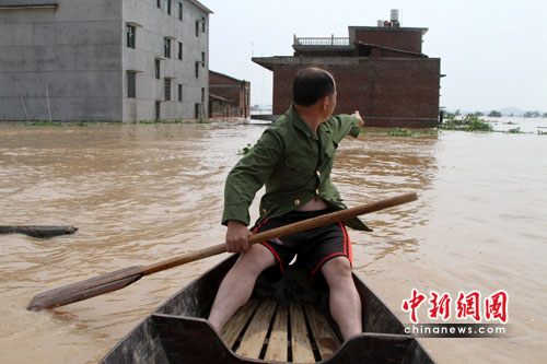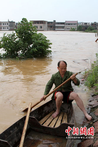 江西省第二大河抚河决堤之后,当地居民与各处赶到的抗洪大军一道,展开生死救援,在重灾区罗针镇梅家渡村,一位中年男子用自己家的小舢板来回数十趟,将100多乡亲从泽国中送到了公路高地。