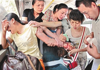 昨日上午9:40,四川女孩阿婷(化名)在563路公交车上的冲动之举,吓坏了车上乘客———为愁怨所伤的她悄悄用水果刀切开自己的左腕,满手鲜血引起短暂骚动。缓过神的人们迅速展开一场自发的救助行动。