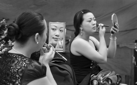 桂花和演员们在后台化妆
