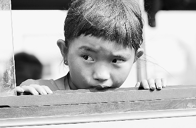 河南南阳丹江口库区,搬迁车上的儿童扭头回望家乡的方向。沙 浪摄(人民图片)