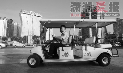 贺龙体育馆附近,大学生协管员沈溪滨和同事开着巡逻车在辖区内巡逻。记者秦楼