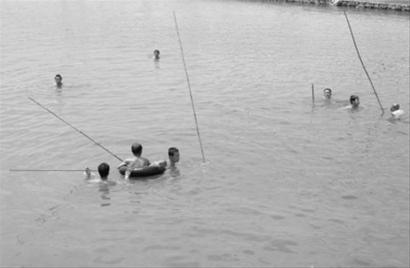 该方塘长约120多米,宽约40余米,最深处达3米左右。不一会儿,接到求助的葫芦岛消防官兵也赶来增援。他们迅速穿上救生衣,腰间系上安全绳索,手拉手形成一条人绳,有时前后分成两组,小心翼翼地在水下探摸寻找落水者。